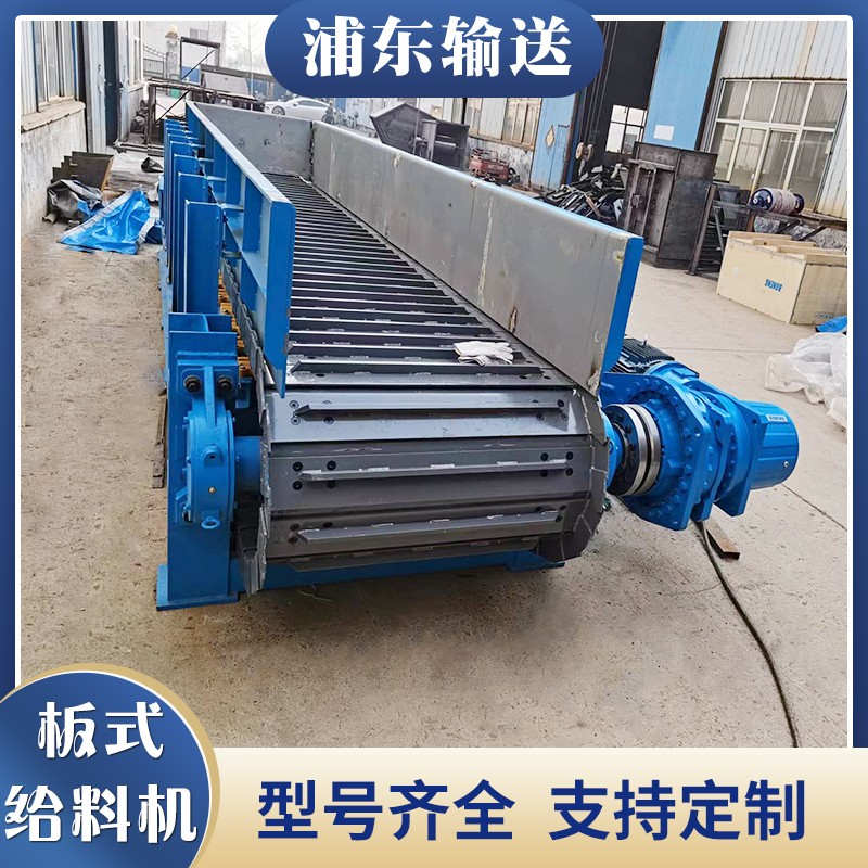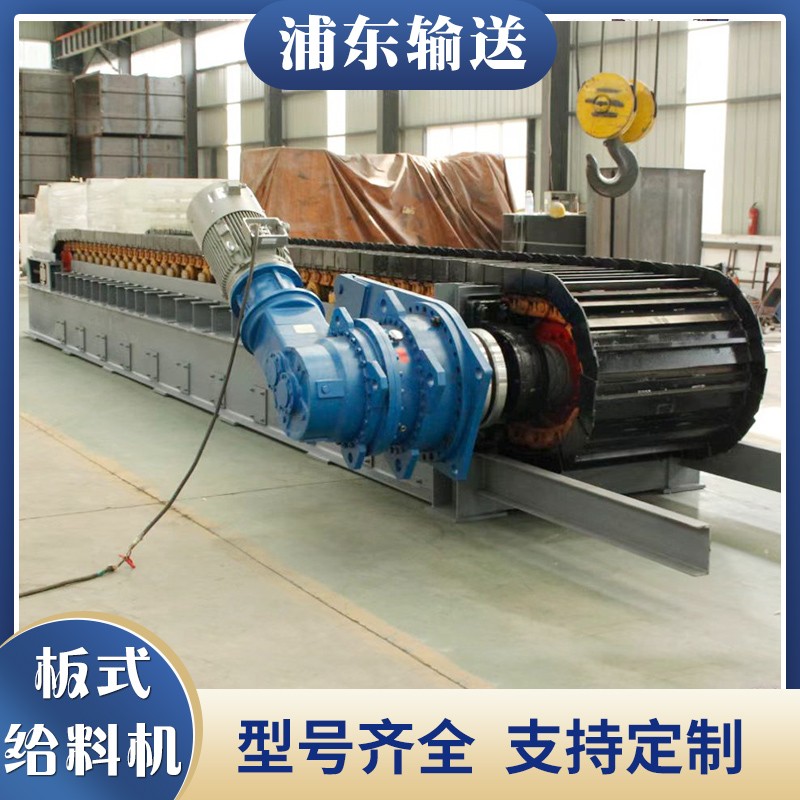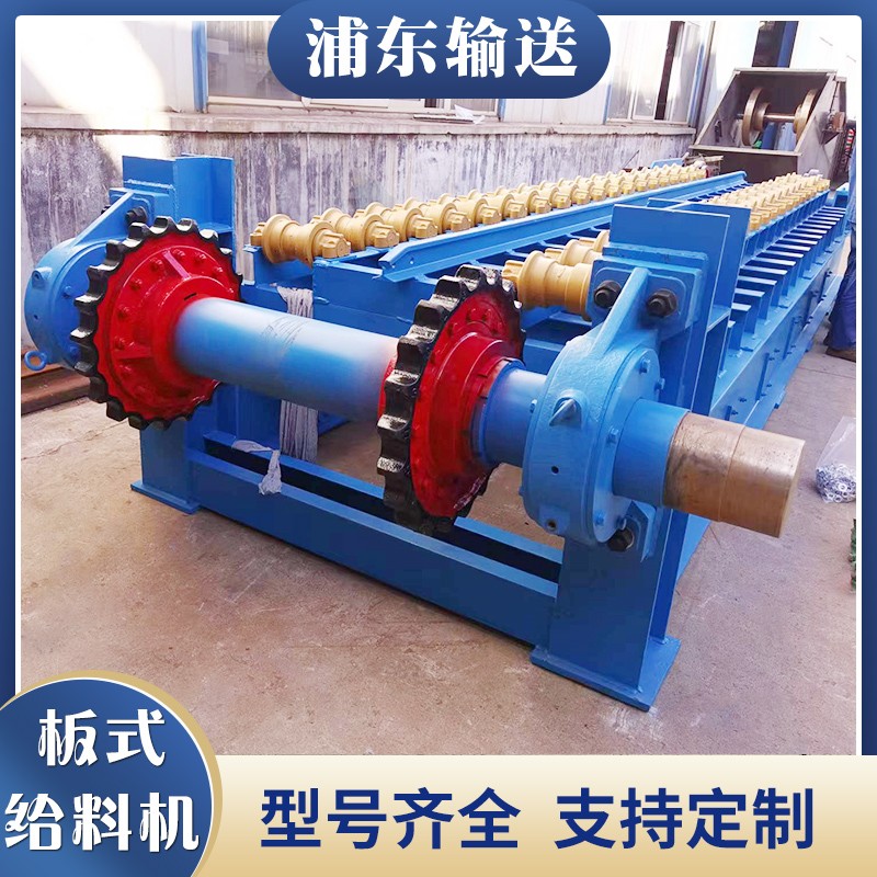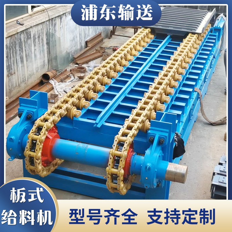 。重型板式給料機(jī)可水平安裝,也可傾斜安裝,*大傾角20° 二、特點(diǎn) 重型板式給料機(jī)拖曳鏈條采用**廠家生產(chǎn)的標(biāo)準(zhǔn)干式履帶鏈條,無(wú)需潤(rùn)滑,抗拉強(qiáng)度高安裝維護(hù)方便。如圖: 重型板式給料機(jī)所有鏈連接部位均采用脹套和鎖盤(pán)連接,不損傷軸徑,減少應(yīng)力集中,方便拆裝。 重型鏈板式給料機(jī)鏈板為沖壓焊接結(jié)構(gòu),鏈板之間弧形搭接,工作時(shí)不漏料,鏈板上下加強(qiáng),具有更大的承載能力。 重型鏈板式給料機(jī)驅(qū)動(dòng)裝置采用懸掛單點(diǎn)浮動(dòng)支撐方式,齒徑吻合不受基礎(chǔ)精度的影響,可*大限度減少板喂機(jī)的徑向安裝尺寸板式給料機(jī)技術(shù)參數(shù):